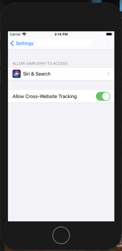 这里的解决方案是添加一个设置包(或类似的设置),它允许iOS设备从设备的设置应用程序中显示一个设置页面。本质上,遵循Settings.bundle tutorial和Info.plist设置的NSCrossWebsiteTrackingUsageDescription将触发设置切换在下面的屏幕截图。
