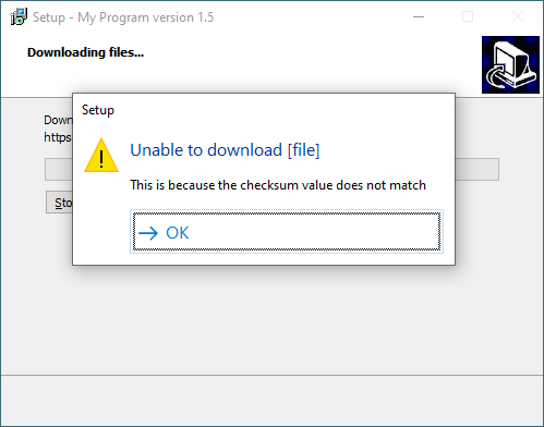 'Unable to download [file]', 'This is because the checksum value does not match',