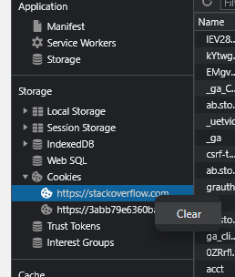 步骤3:在存储部分找到Cookies选项卡,选择一个您希望清除的选项卡,然后右击并清除它。
