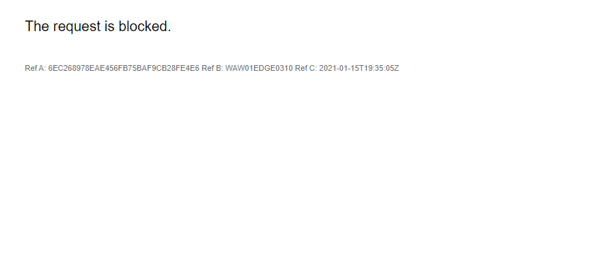 请求被阻止。参考文献A: 6EC268978EAE456FB75BAF9CB28FE4E6参考文献B: WAW01EDGE0310 Ref C: 2021-01-15T19:35:05Z