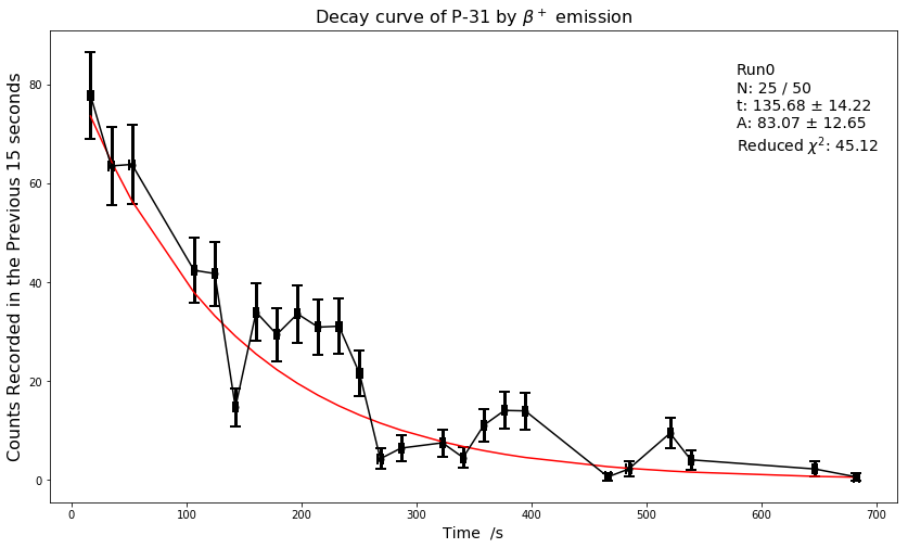 plt.title("Decay curve of P-31 by $β^+$ emission", fontsize=16)我使用的模型(诚然,我对这里的编程不太自信)是: