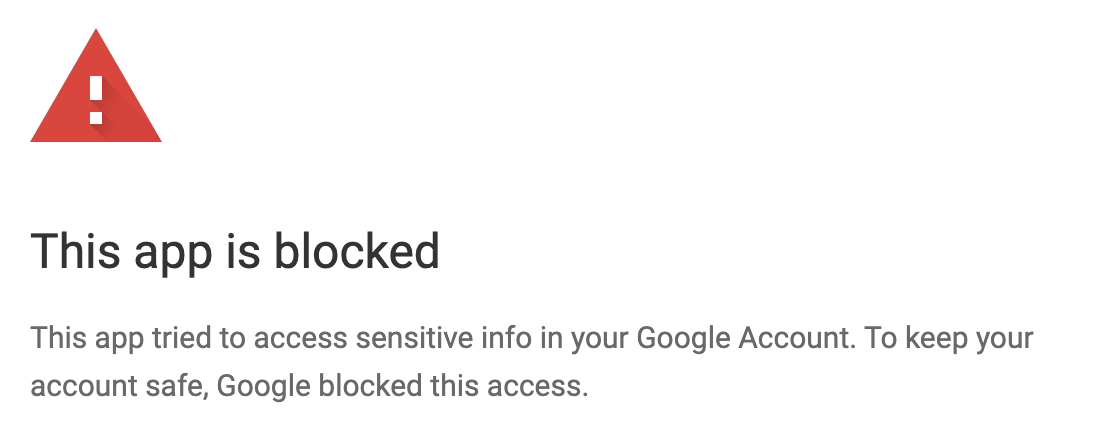 这个应用程序被封锁了,这个应用程序试图访问你的Google帐户中的敏感信息。为了保护你的帐户安全,谷歌封锁了这个访问权限。