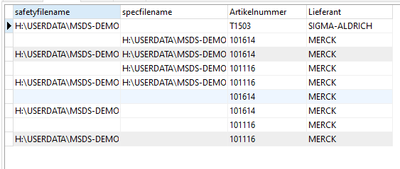 INSERT INTO `massimp` VALUES ('4', '101614', 'MERCK', 'H:\\USERDATA\\MSDS-DEMO\\Merck\\MSDS\\101614_SDS_AT_DE.PDF', '');