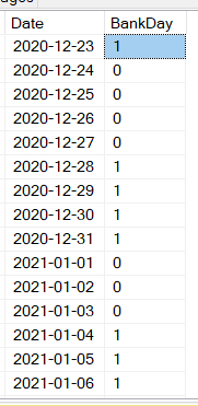 在工作日指导表中,银行日标记为0,工作日标记为1。