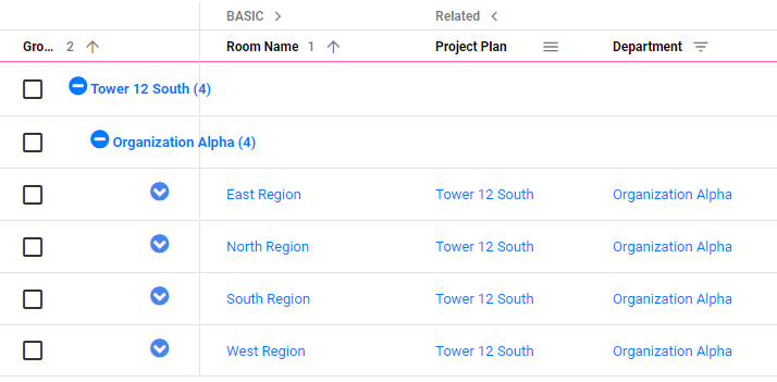 注:在这个网格中,12塔南和组织阿尔法确实是行分组。它们也是单独的数据位,可以在应用程序的其他地方进行操作。本质上,它们是与这里的行数据相关的数据。