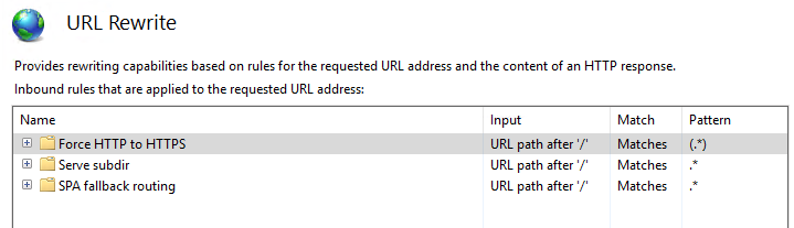 在发布到IIS之后,我可以进入并创建我的"http -> https“规则,然后将其添加到先前生成的web.config文件中。