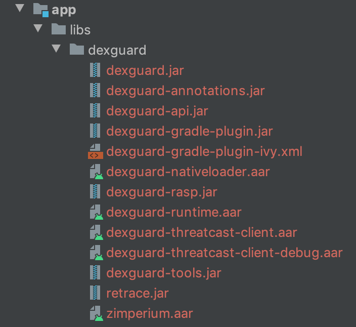 implementation(name: 'dexguard/dexguard-runtime', ext: 'aar')