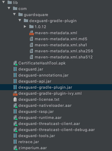 classpath 'com.guardsquare:dexguard-gradle-plugin:1.0.17'对于我的项目,我还复制了com/目录中下载的zip文件夹中的所有内容(忽略我的版本,我还没有在9.0.17上)