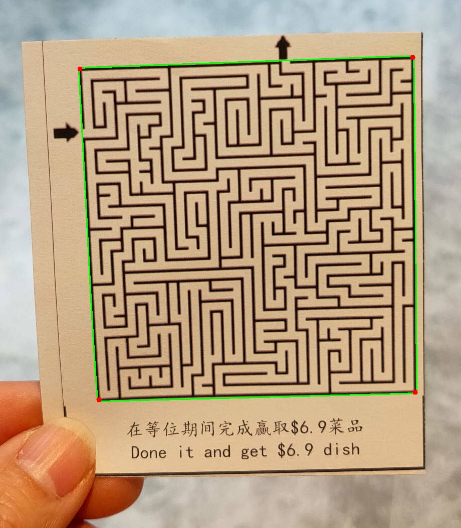 这里有一种方法可以处理这个迷宫,并在Python/OpenCV中纠正它。