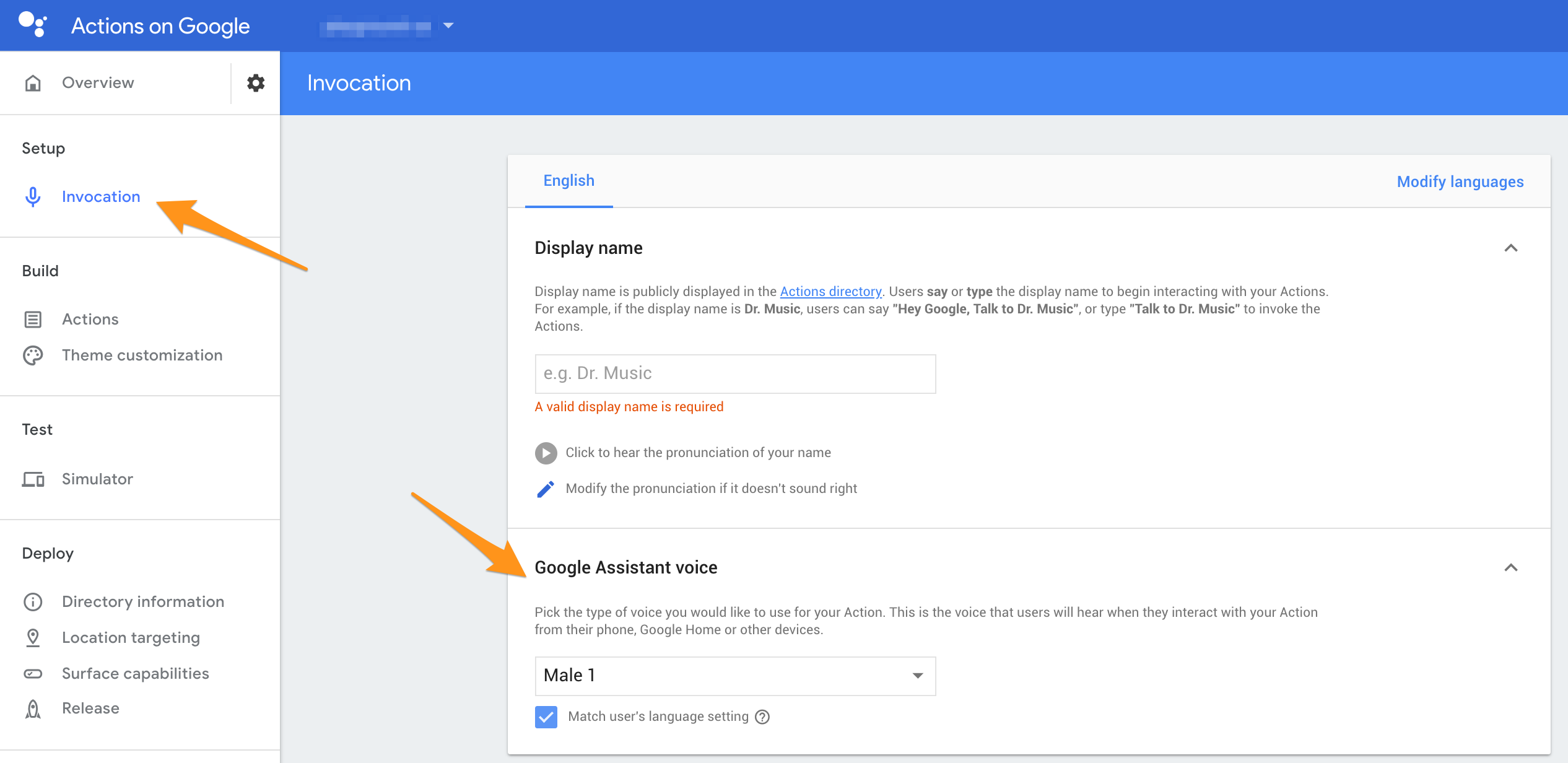 我在做对话。是否有任何方式以编程方式访问Google上的Action。我试图从我的代码中更改google助手的声音和显示名称。这有可能吗?