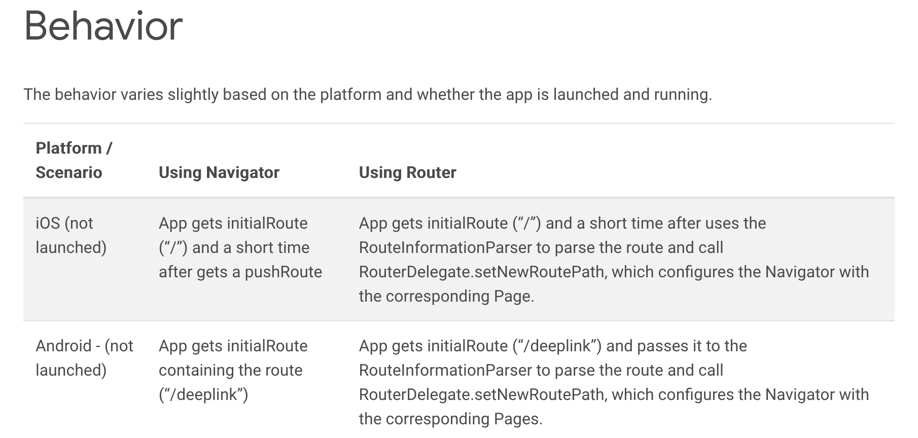 根据颤振的官方深度链接页,我们不需要任何插件或原生的安卓/iOS代码来处理深度链接。