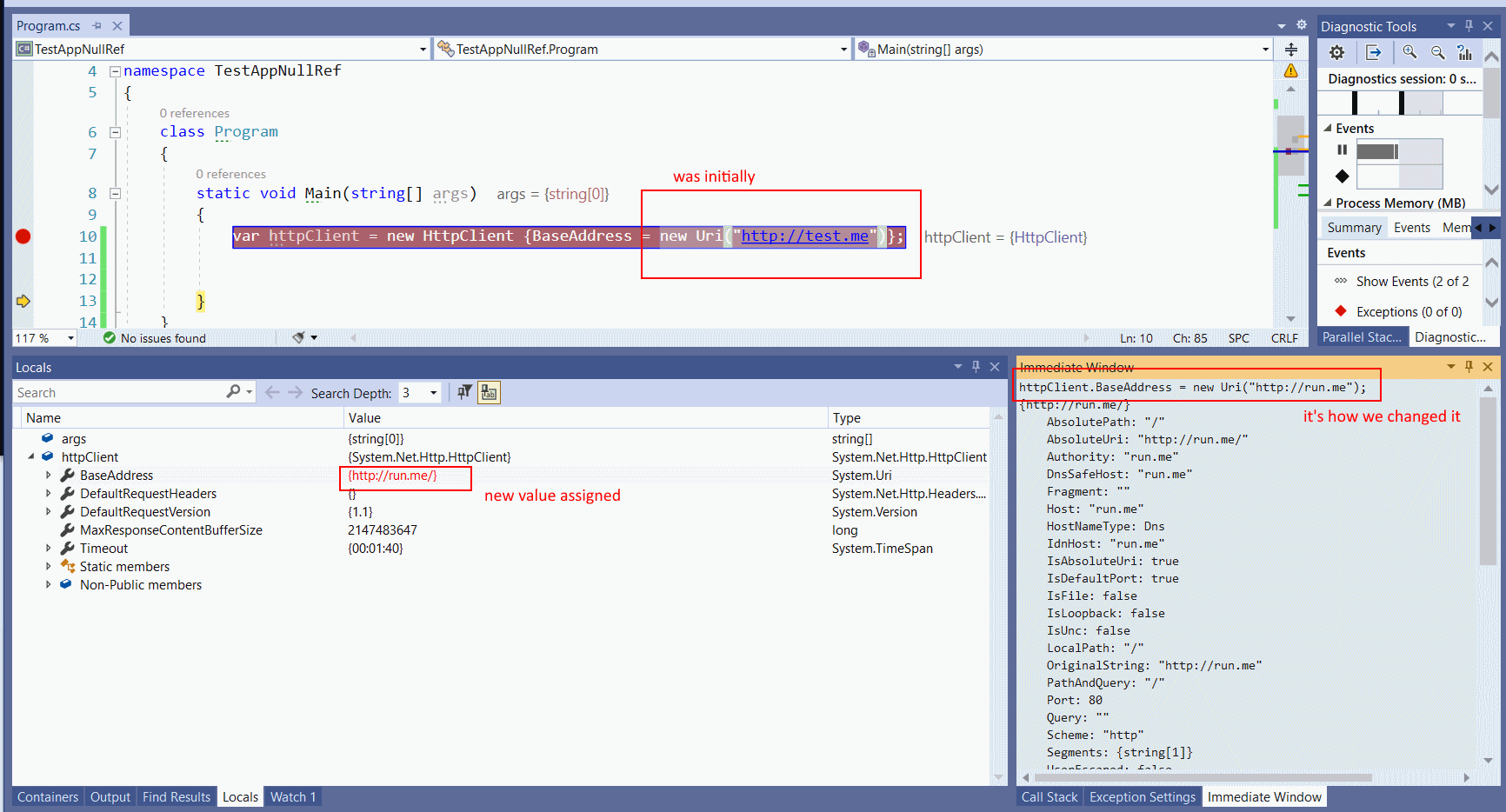 只需使用VisualStudio立即窗口并将新的Uri()值分配给httpClient.BaseAddress。真的不确定它不会破坏HttpClient的下划线逻辑,但是它做了您要求的事情