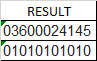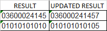 现在,我想执行下面的操作,并更新一个新的列,这将增加一个额外的数字在最后。下面所示的示例用于第一个数字03600024145