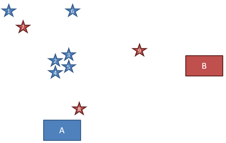 注:有两个以上的口吃,因为有超过9个孩子。这只是为了举个例子。在现实世界里会有600个孩子和20个研究所.