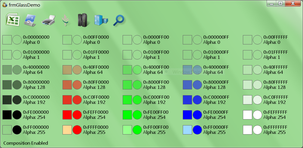 您会注意到,启用ClearType的文本很难在玻璃上绘制