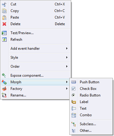 我在SpringSource工具套件中使用最新的GWT设计器版本8.1.1.r36x201012191024。从官方的用户指南来看,它应该具有工厂、变形等特性。