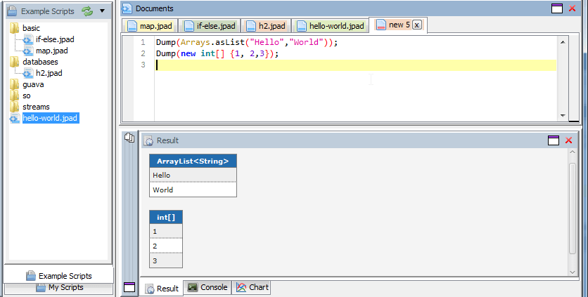 我发现LINQPad在回答C#或VB.NET的StackOverflow问题时非常有用,它允许我编写一些快速的代码,运行它,并且(如果我想的话)看到一个格式良好的转储结果。这样我就可以确定我发布的代码实际上是运行的。到目前为止,我还没有看到任何可以用Java实现相同结果的东西。外面有类似的东西吗?