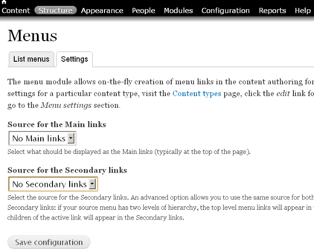 如果您不需要,只需取消复选框或删除管理/结构/菜单/管理/主菜单中的复选框。