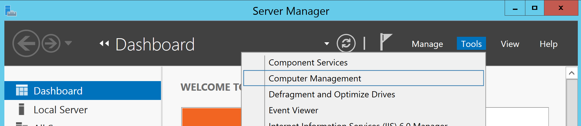 然后!通过服务器管理器添加用户名和密码。选择Tools -> 计算机管理