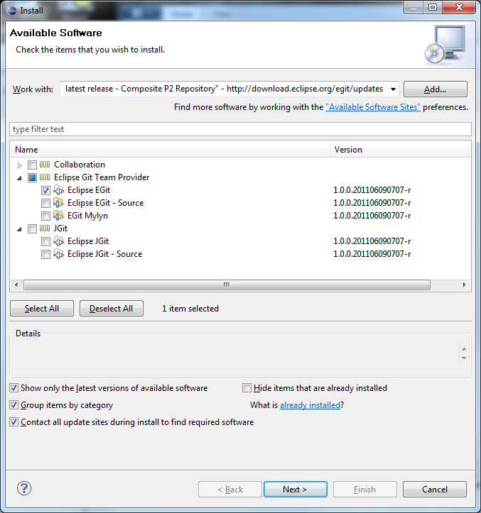 事实证明,我错误地安装了Eclipse,而不是Eclipse。当我选择了EGit包之后: