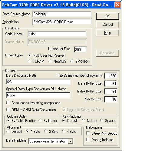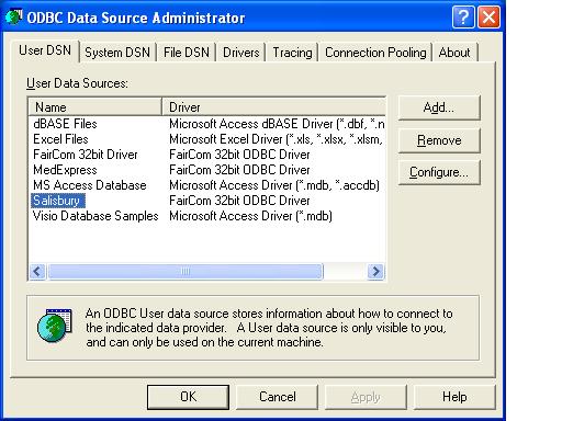 OdbcConnection DbConnection2Salisbury = new OdbcConnection("DSN=Salisbury;DBQ=S:\;CODEPAGE=1252;");