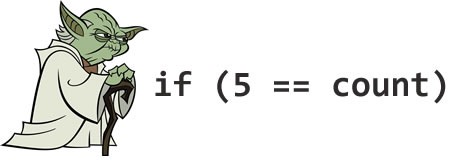 这是C++ days的雏形,在那里您可以使用=而不是==来意外地赋值变量,而且它仍然会通过编译器,因为您可以将几乎任何东西传递到C++中的比较中。不要在C#中使用它,因为它不会允许您这样做。