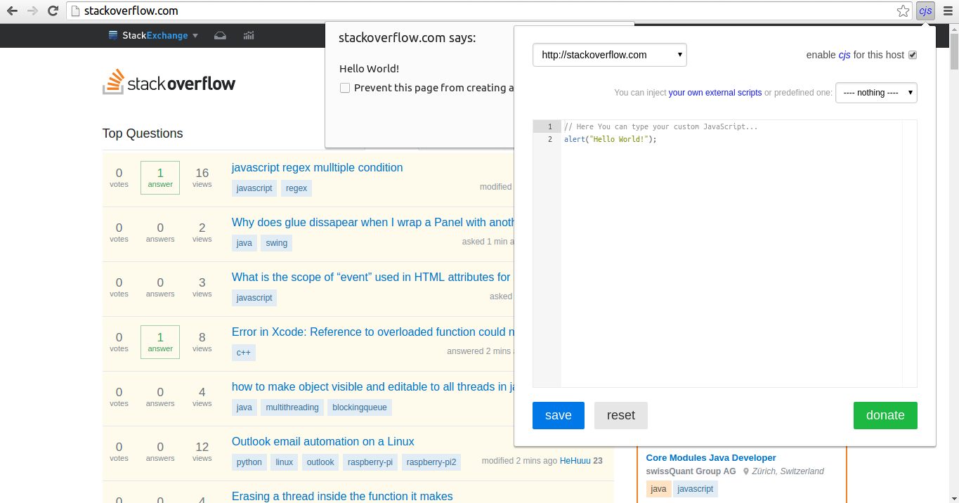 另一种巧妙地解决问题的方法是网站自定义JavaScript。您只需安装扩展名,这大约需要2秒,然后您可以立即开始键入您的定制JavaScript为指定的网站。