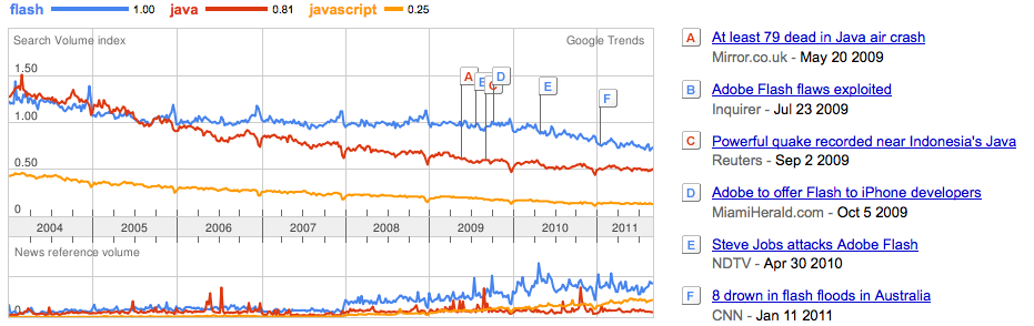 http://www.google.com/trends?q=flash%2C+java%2C+javascript&ctab=0&geo=all&date=all&sort=0