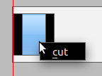 我在为一个大学项目做视频编辑。guiVideoElement (黑区)是视频材料在guiVideoTrack (轻灰色区域)上的图形表示。使用Shift+left鼠标按钮,您可以在guiVideoElement上进行选择(蓝色区域)。若要处理所选内容,可以通过右键单击选定区域打开上下文菜单。