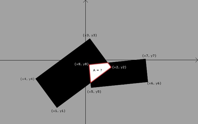 下面是两个矩形。给定矩形顶点的坐标- (x1,y1).(x8,y8),如何计算重叠区域(下图中为白色)的面积?