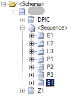 我在所需的记录E1、E2、E3上设置了min occurs = 1,max =1。我在可选记录P1、P2、P3上设置了min occurs = 0,max =1。