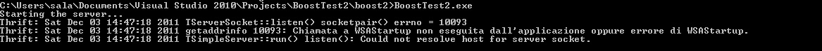6)我在MSVC++ 10中创建了一个新项目,即链接boost和节俭库&源代码,在生成之前,我将main.cpp dir (以前使用*.skeleton.cpp编译器生成,并删除*.skeleton.cpp文件)移到项目中,这作为main.cpp并成功地编译了它。