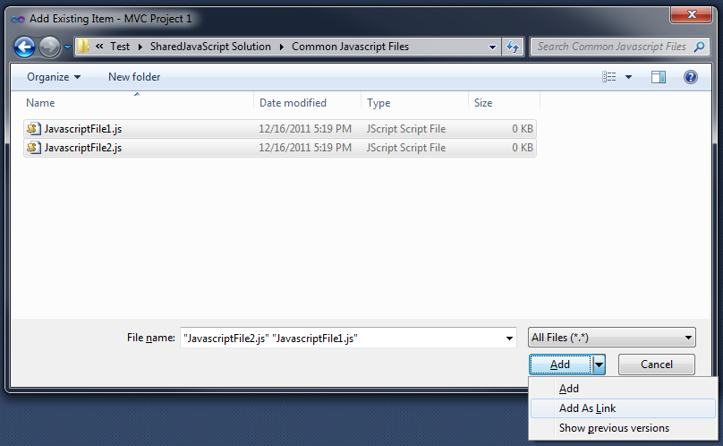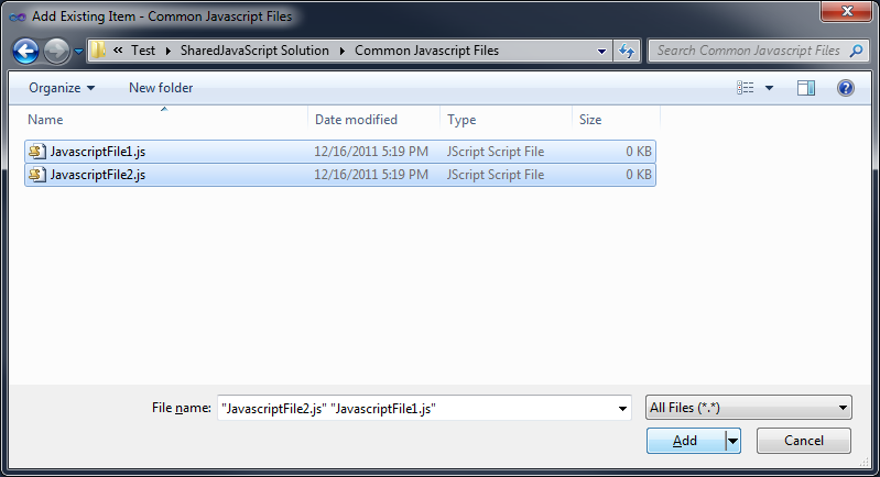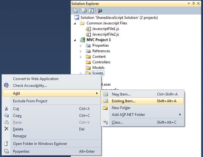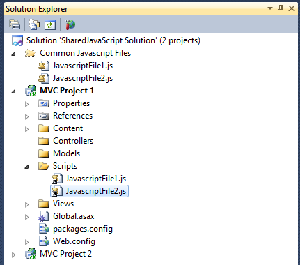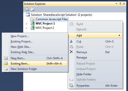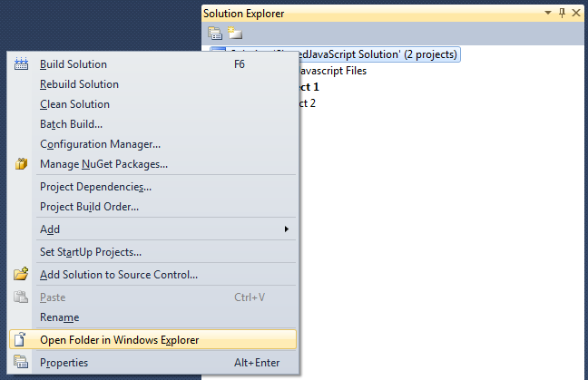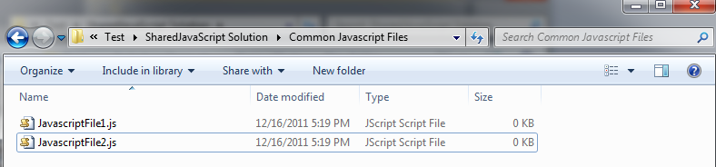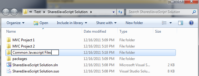 右键单击该解决方案并创建一个名为Common Javascript Files的新解决方案文件夹(或任何您想称之为它的内容)。