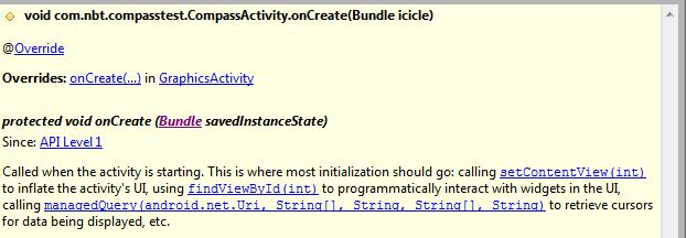 如果我点击弹出窗口中的链接: Overrides: onCreate(.)在活动中