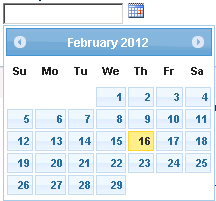 当用户在日期选择器上选择时,日历会以下拉方式出现,但是日期不能选择,也不能选择其他月份的。