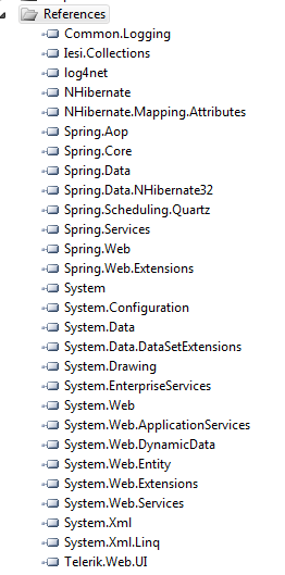 我是.NET的新手。我以前在.NET中使用过Spring.Northwind和Hibernate,但这是我第一次在.NET中使用。为了开发我的应用程序,我以Spring.Northwind解决方案为例。