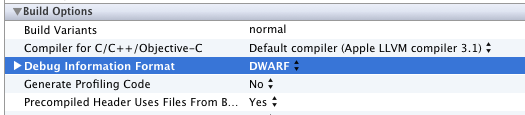 到目前为止,一个对我有用的解决方案是将项目中的格式设置从“带dsym的矮人”更改为“普通的老”“侏儒”。