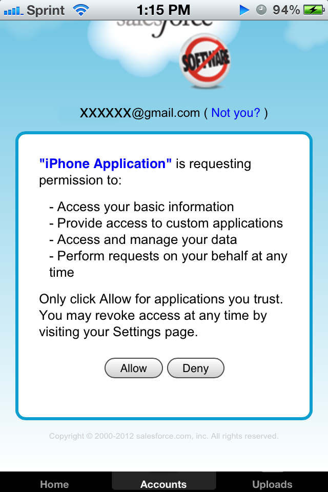 我正在创建一个使用salesforce作为服务器端数据组件的iPhone应用程序,我需要从应用程序中访问数据库来检索用户登录到应用程序中的数据,为此我需要使用销售人员进行身份验证。