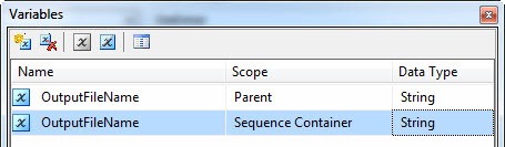 由于变量是在SSIS中以名称标识的,因此在较低范围内的变量(例如包含文件系统任务的序列容器)将有效地拦截包作用域变量的变量标识(如果两个变量命名相同的话):