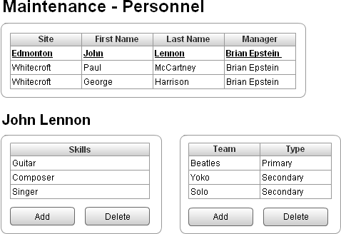 如果用户选择人员,系统将提供一个CRUD屏幕:
