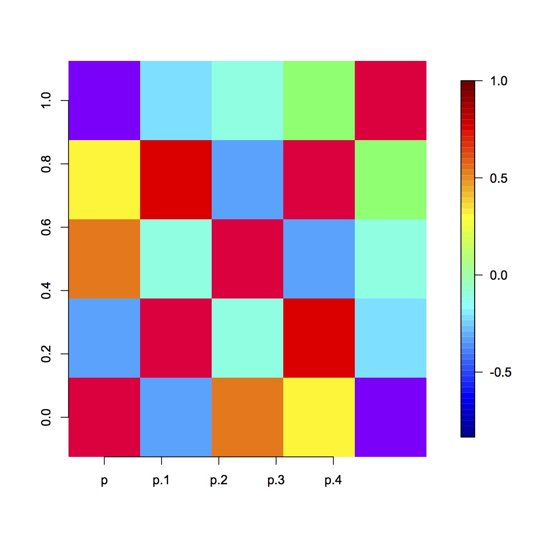 p.4 0.6123724 0.14744196 0.10206207 -0.08574929 1.00000000使用此代码: