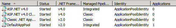 应用程序池配置如下所示: