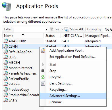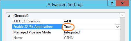 然后,您需要调整应用程序池以使启用32位应用程序。