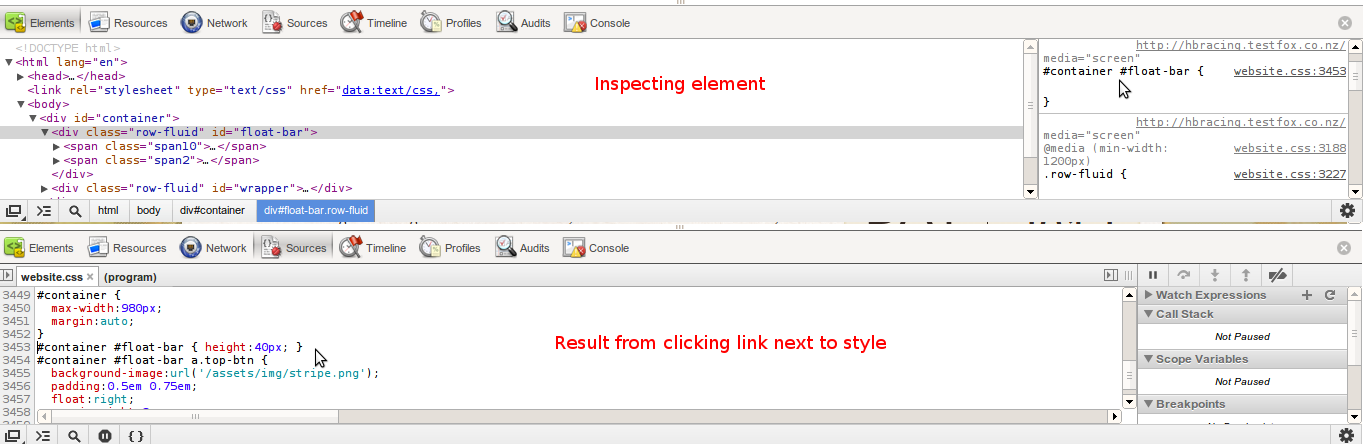 如果我单击该检查器的css文件行的链接,我可以看到那里的样式。