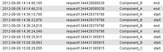 [2012-08-08 15:40:28,957] [request1344433228957] [Component_A] [start]