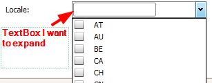 我在一个应用程序中使用CheckComboBox (来自扩展WPF工具包),我想把"textBox“做得更宽一些(实际上,我希望它能填充所有的CheckComboBox),但我不知道如何应用这些样式。