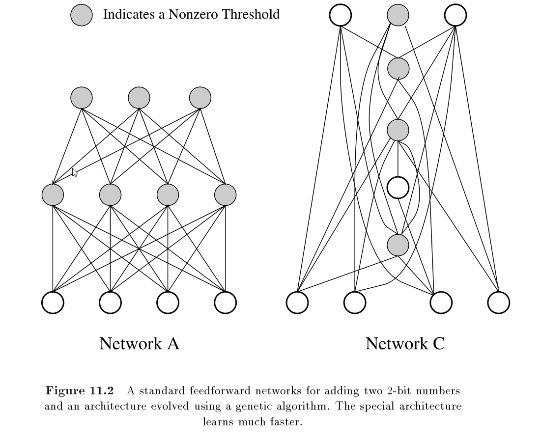 对于这类神经网络的总结。神经元及其连接是利用进化技术创造出来的。因此,它们没有严格的分层方法。汉斯使用了以下技巧: