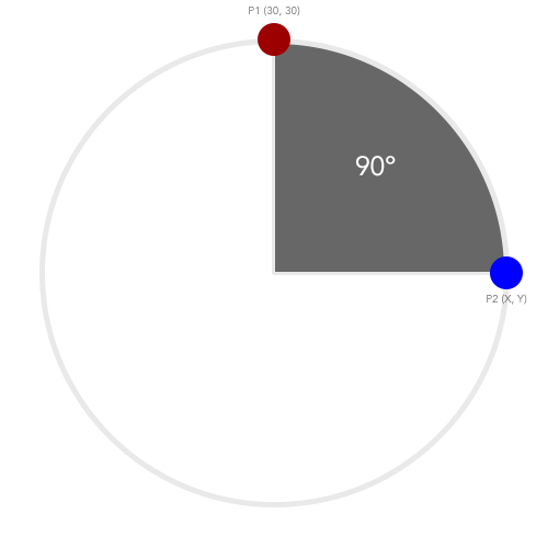 实际上,你只是想在一个圆上找到一个点,考虑到它的角度(从顶部而不是右边)和圆圈的半径。
