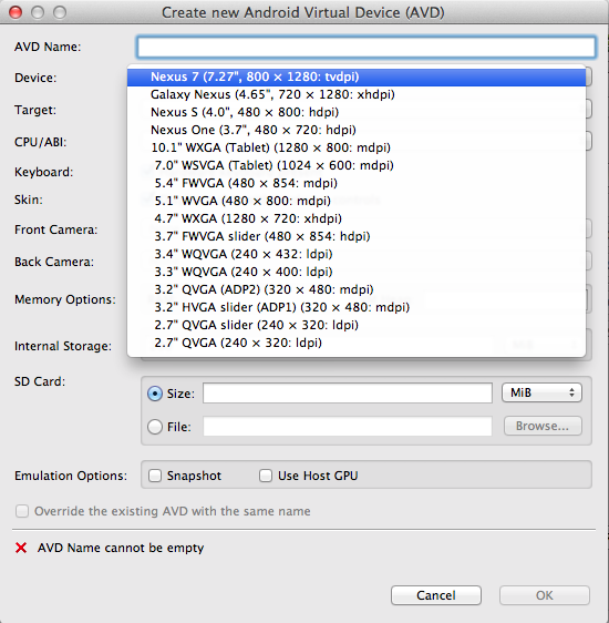 若要制作Nexus 10 AVD,请导航到设备定义: