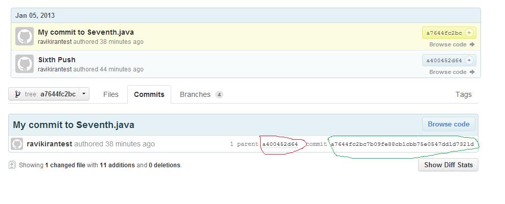 “父”提交是提交之前的一个,因此‘提交’散列是要使用的哈希。为了避免疑问,你可以: